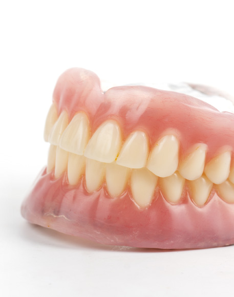 すべての歯を失った場合に作成します。吸盤のように粘膜と入れ歯の吸着で固定します。人工歯・義歯床ともにプラスチック(レジン製)からできています。適用範囲が広く、ほとんどの状態に使用が可能です。また樹脂でできているため、落として破損した場合なども修復がしやすいです。