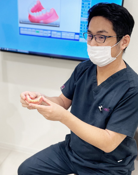 しっかりと噛むことは、歯はもちろん全身への健康に影響します。よく噛める入れ歯を作るためには入れ歯の形と歯茎をぴったりと合わせることが大切です。「入れ歯が合わない…」といった場合は、正確な型取りができておらず、舌や筋肉の動きなどがうまく入れ歯に反映されずに違和感が生じるためです。当院では違和感や痛みがないように、精密な型取り、患者様のお口にあった設計を行い、技工士と連携してこだわりの入れ歯を作っています。機能面で保険の入れ歯は心配というイメージがある方もいらっしゃるかもしれませんが、保険の入れ歯でも痛みがなく外れにくい、よく噛めるものを作ることが可能です。材料などに制約はありますが、ほとんどの状態に対応でき比較的容易に修理も可能です。
